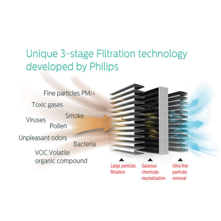 - Máy lọc không khí này sử dụng công nghệ lá chắn vi mô VitaShield được nâng cấp để loại bỏ hiệu quả 99,97% hạt nhỏ 0,003 micron (nhỏ hơn 800 lần so với giới hạn trên PM2,5), bao gồm PM2,5, vi rút, vi khuẩn, phấn hoa, bụi và Thú cưng vẩy *. Hãy chắc chắn rằng bạn hít thở không khí trong lành ngay cả trong những mùa ô nhiễm nặng.