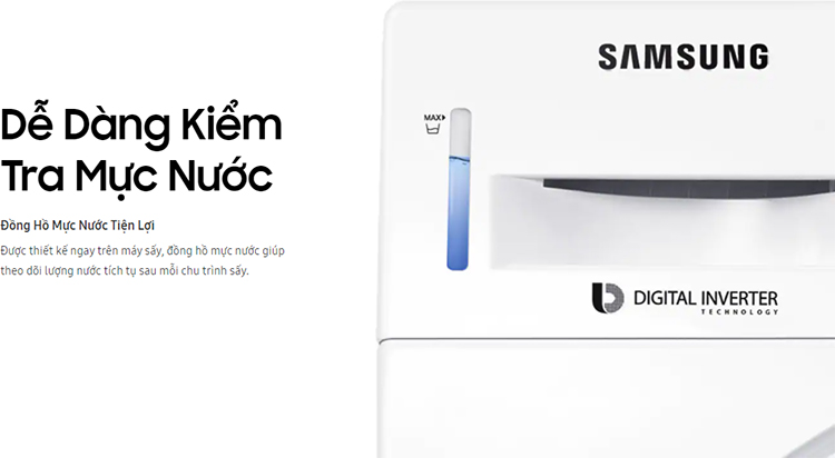 Đồng hồ hiển thị mực nước được thiết kế ngay trên máy sấy, cho phép bạn theo dõi lượng nước tích tụ đã được vắt sạch từ quần áo ướt. Nhanh chóng đổ nước trong hộp chứa trước khi bắt đầu sấy khô mẻ quần áo tiếp theo.