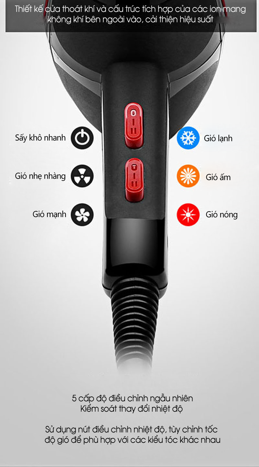 - Máy sấy tóc này cung cấp nhiều chọn lựa tốc độ/nhiệt độ phù hợp cho mọi loại tóc, dễ dàng và có được kiểu tóc hoàn hảo.
