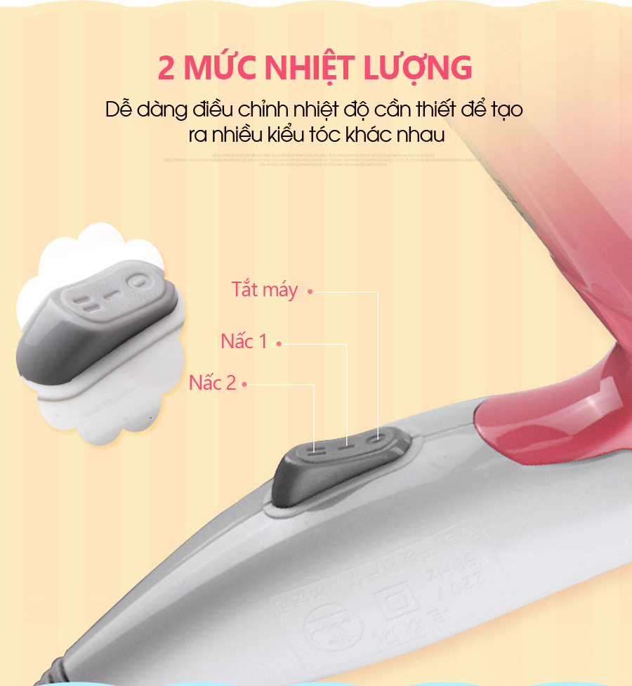 - Máy sấy tóc này cung cấp 2 chọn lựa tốc độ/nhiệt độ để sấy tóc nhanh chóng, dễ dàng và có được kiểu tóc hoàn hảo.