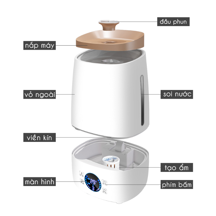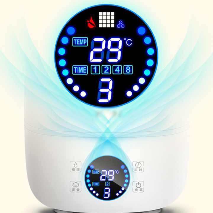 Cách sử dụng: Tính năng độ ẩm k đổi. khi ấn nút này, màn hình kỹ thuật số hiển thị giá trị độ ẩm 40 nhấp nháy trong 3 giây không hoạt động và chạy với giá trị được đặt. Khi độ ẩm trong nhà hiện tại lớn hơn độ ẩm cài đặt, bộ phun sẽ ngừng xuất ra và độ ẩm trong nhà sẽ nhỏ hơn độ ẩm cài đặt 5% rh