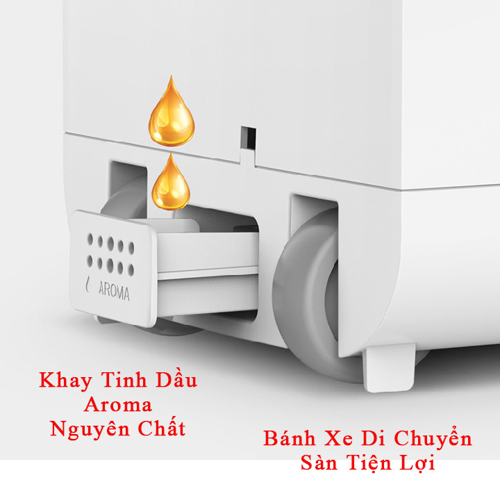 Ngoài ra còn tích hợp khay đựng tinh dầu nguyên Aroma Nguyên Chất - sản phẩm kết hợp với máy tạo ẩm được coi là phương pháp trị liệu các bệnh về hô hấp cũng như chăm sóc các thành viên trong gia đình một cách hiệu quả.