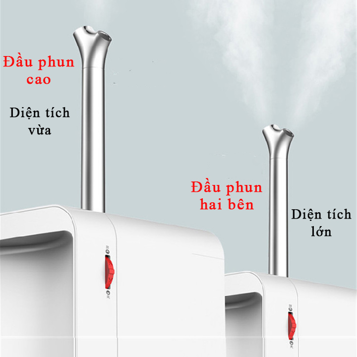 Tích hợp hai đầu phun nước, giúp bạn lựa chọn mức phun cũng như cách phun cho các căn phòng có diện tích khác nhau, hay đơn giản là bạn muốn hiệu quả làm ẩm một cách nhanh chóng hay từ từ.