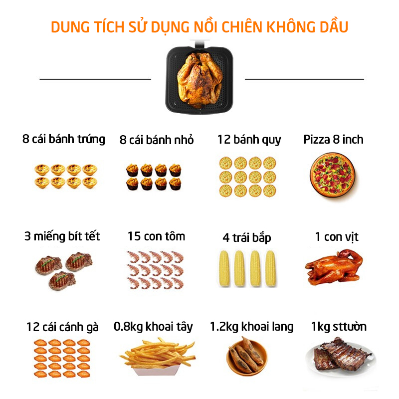nồi chiên không dầu cao cấp dung lượng 5,6L, việc nấu nướng trở nên dễ dàng hơn, không mùi, không khói, không sợ béo, ăn thỏa thích 8063-G