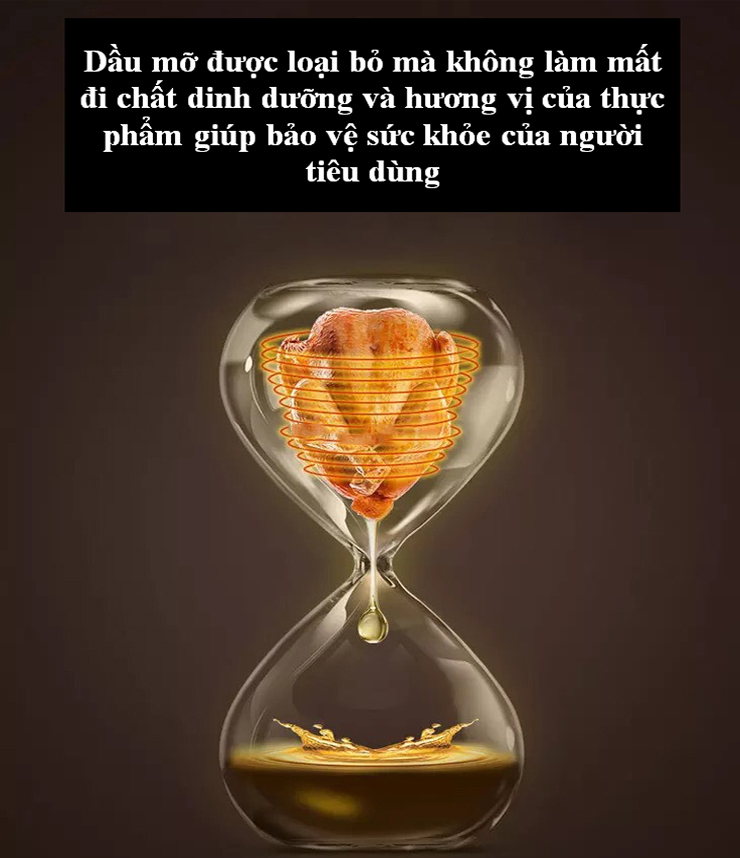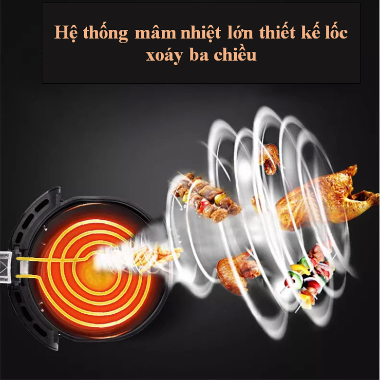 - Công nghệ lưu thông khí nóng tốc độ cao và đều khắp trong nồi, giúp thực phẩm chín đều, giòn và có màu sắc tươi ngon - Có thể nướng/chiên thực phẩm với lượng dầu mỡ sẵn có trong thực phẩm, tạo lên món ăn tốt cho sức khỏe