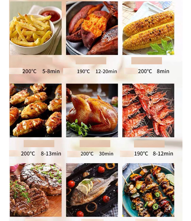 Nồi chiên chân không có thể dùng chiên gà, vịt, tôm, cua cá, sườn, thịt nướng, khoai tây chiên, đậu rán