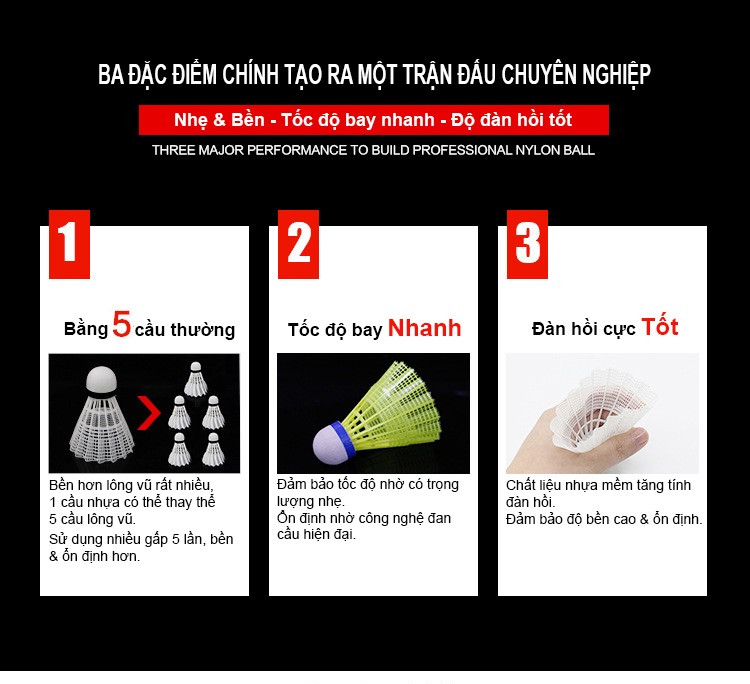 - Tốc độ bay nhanh, thích hợp cho các trận đấu đồng đội, luyện tập thể thao,...