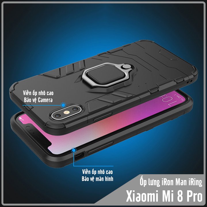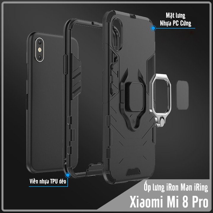 Ốp lưng cho Xiaomi Mi 8 Pro iRON - MAN IRING Nhựa PC cứng viền dẻo chống sốc