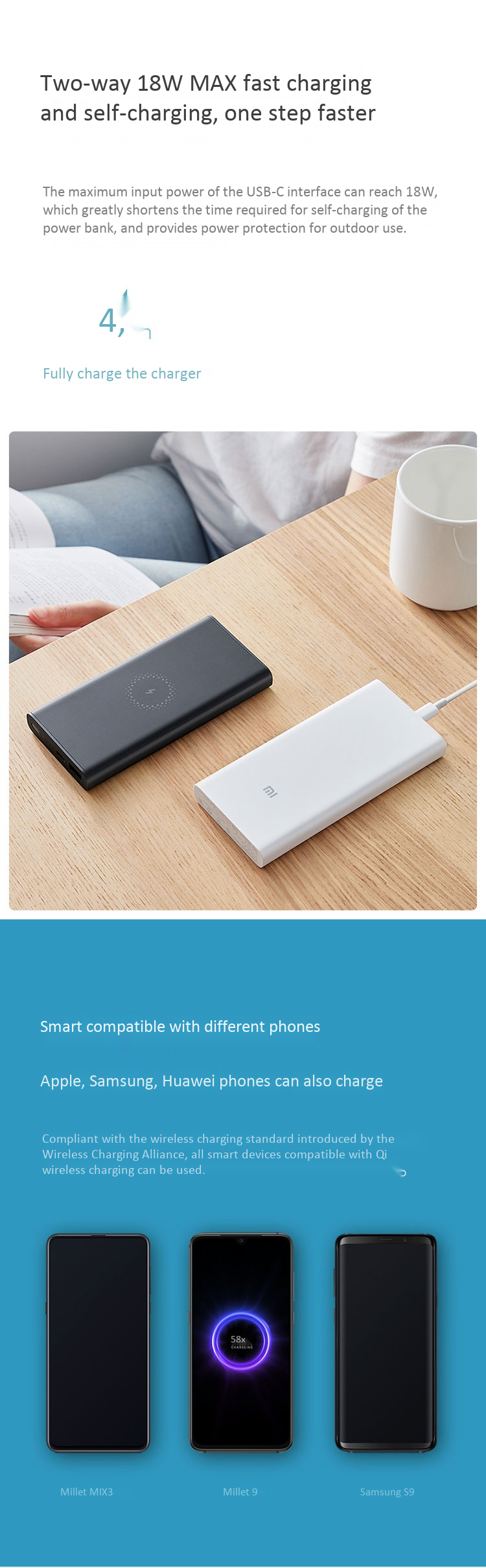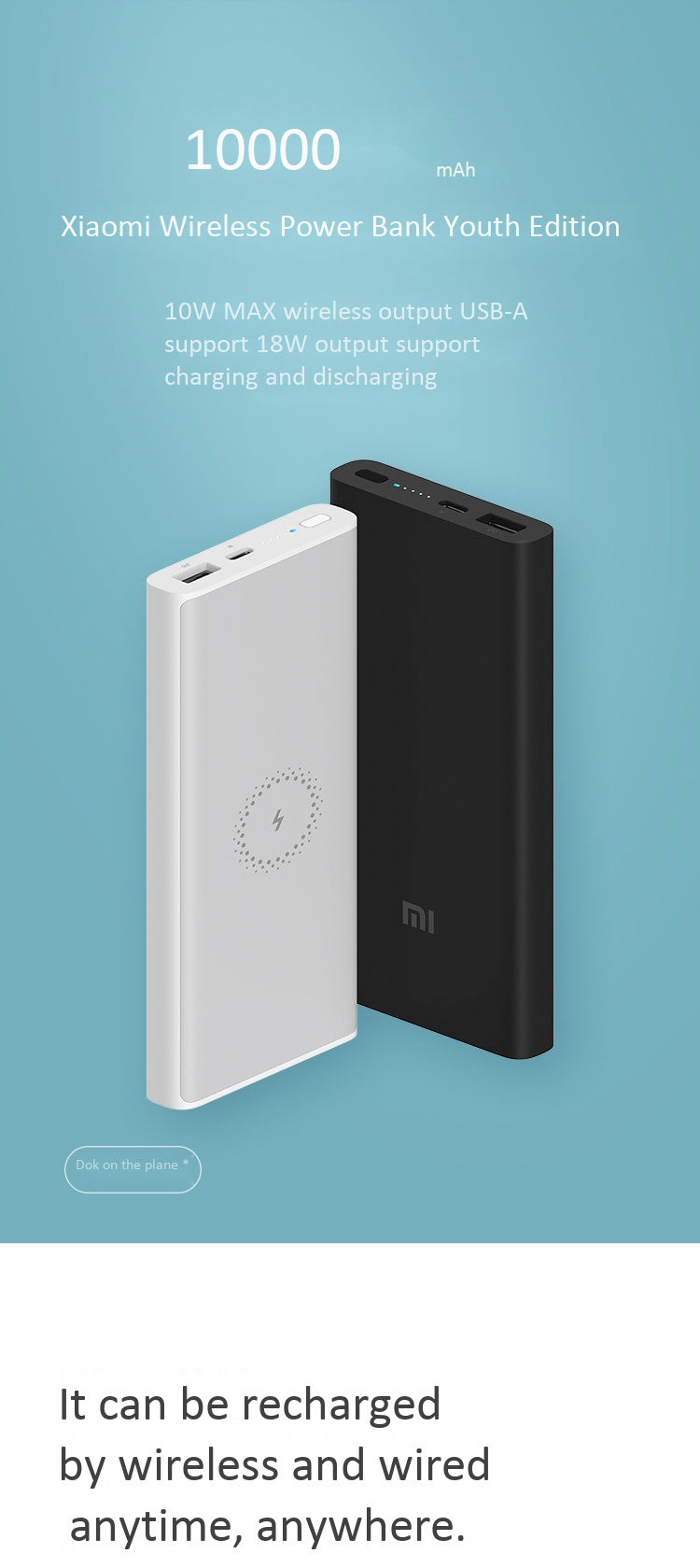 Pin sạc dự phòng không dây Xiaomi 10000mAh - Sạc dự phòng tích hợp sạc không dây 10000mAh Xiaomi lite