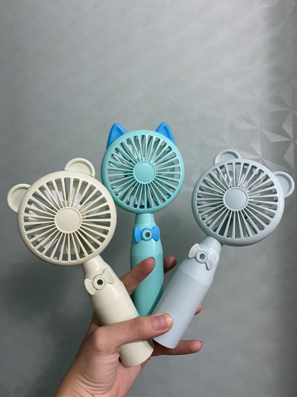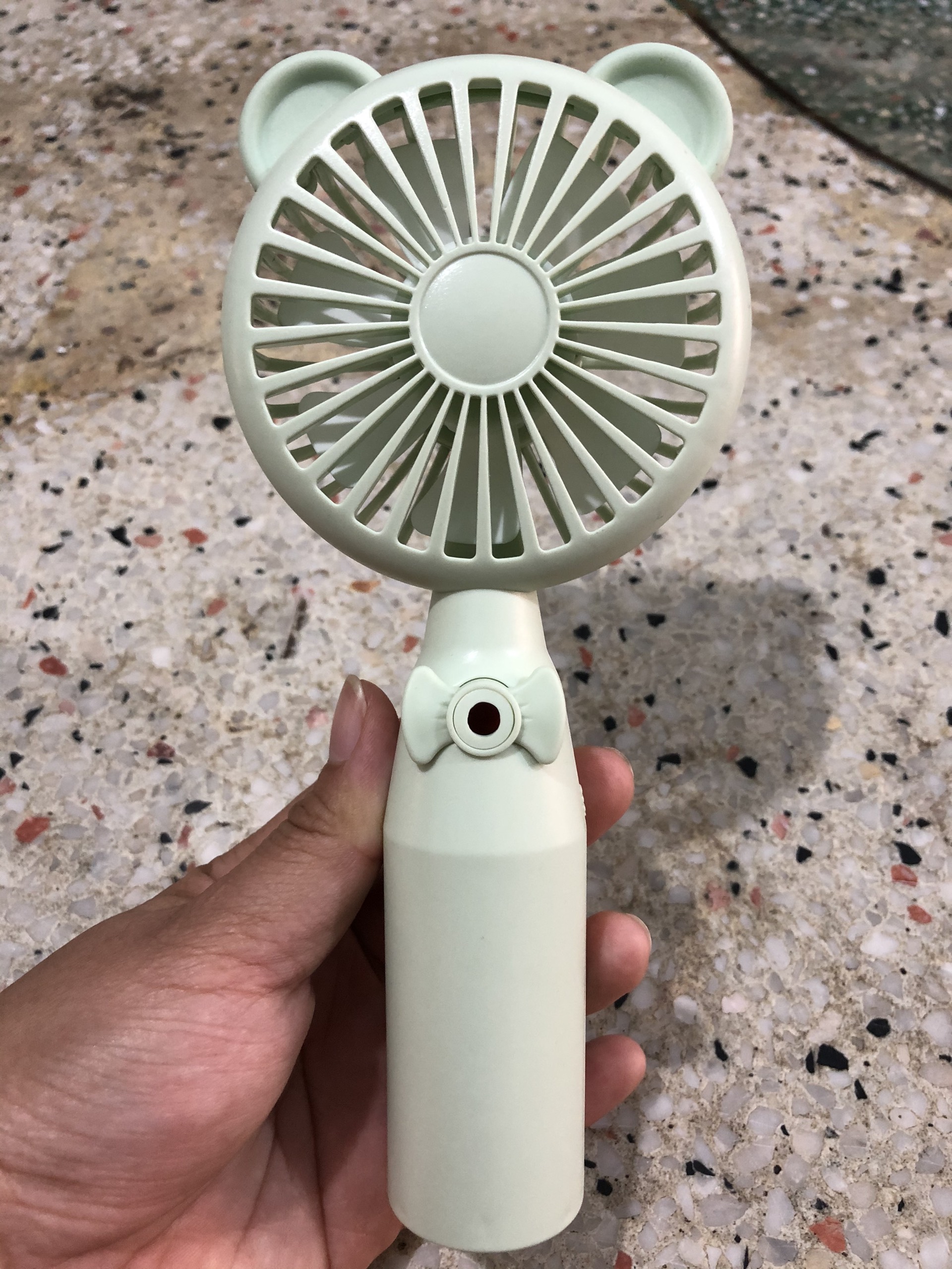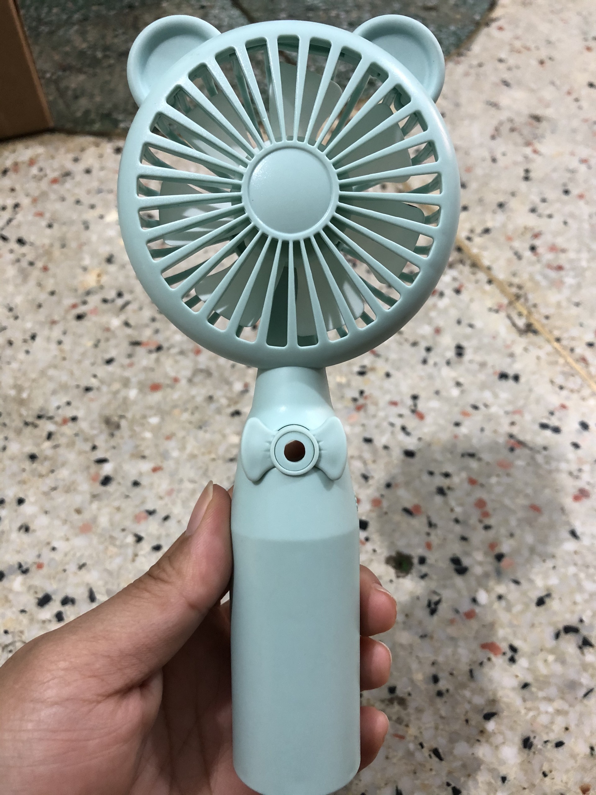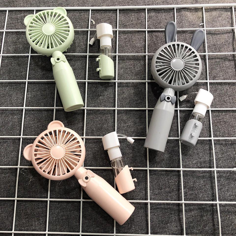 Quạt cầm tay mini có phun sương chất liệu nhựa ABS bền đẹp thiết kế đáng yêu có cổng sạc hình tai gấu