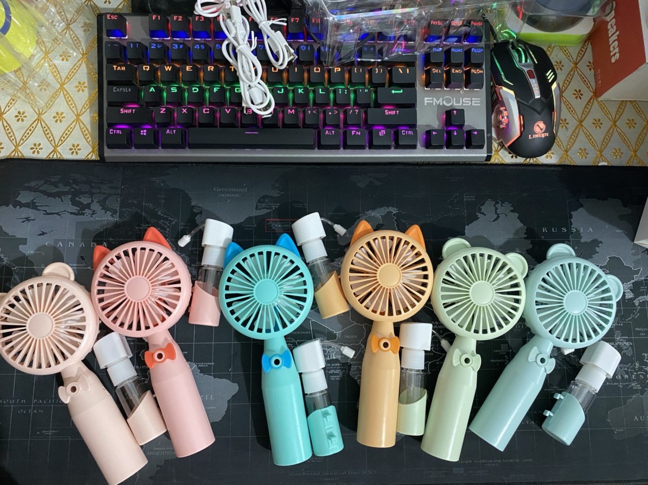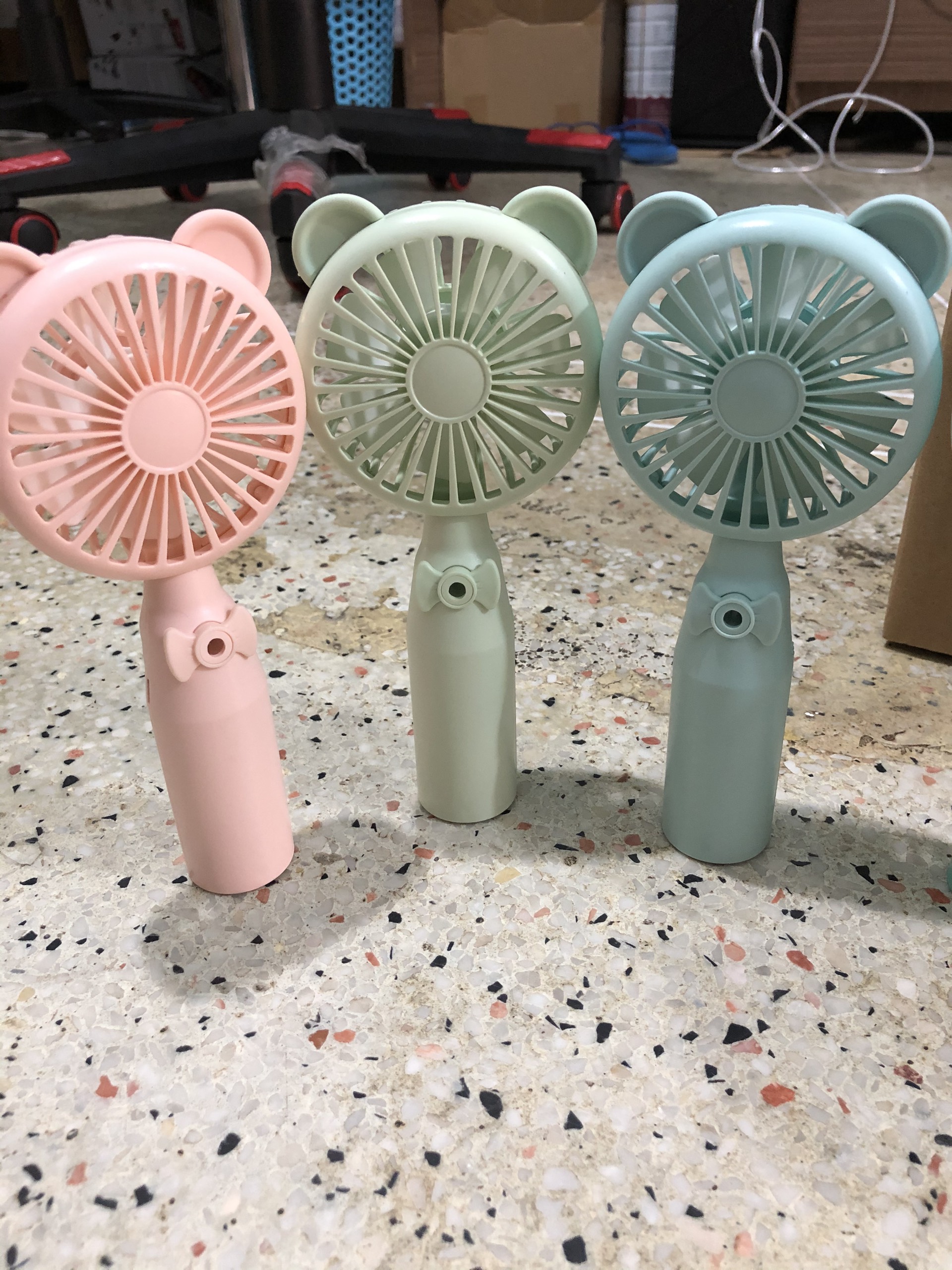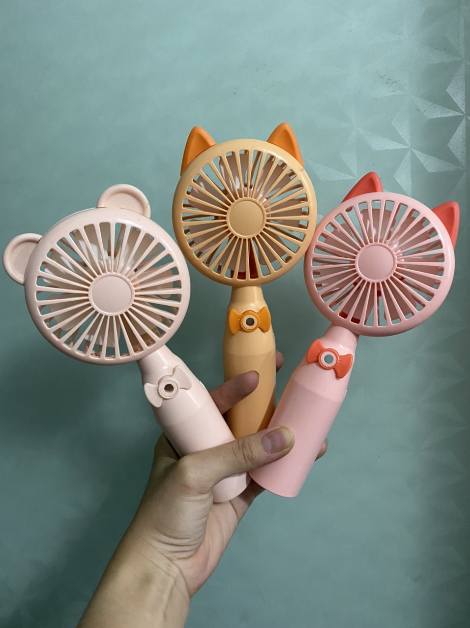 Quạt cầm tay mini có phun sương chất liệu nhựa ABS bền đẹp thiết kế đáng yêu có cổng sạc hình tai gấu