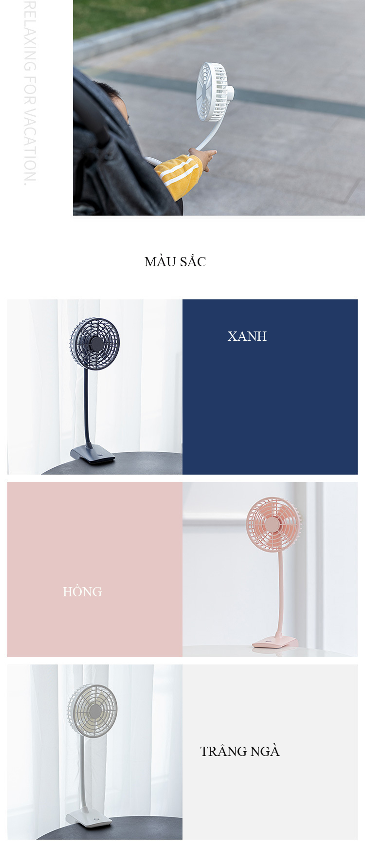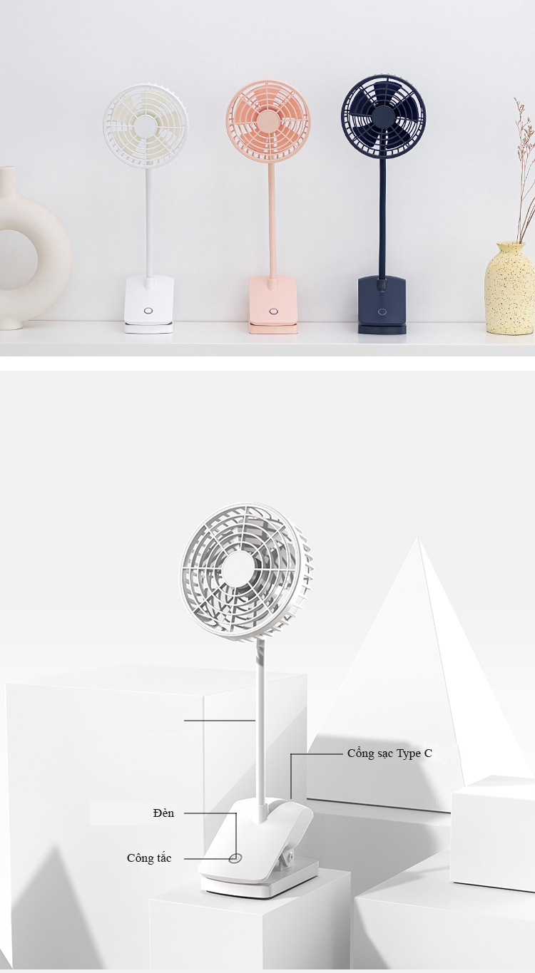 Quạt Mini Tích Điện Kẹp Gấp Di Động Điều Chỉnh Góc Gió Linh Hoạt GF-28