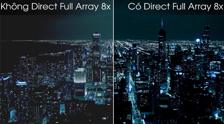 Công nghệ kiểm soát đèn nền Direct Full Array 8x có khả năng kiểm soát đèn nền trên mỗi khung hình hiển thị, tái tạo độ tương phản và dải ánh sáng tối ưu, cho bạn thỏa thích tận hưởng mỗi khung đều là tuyệt tác.