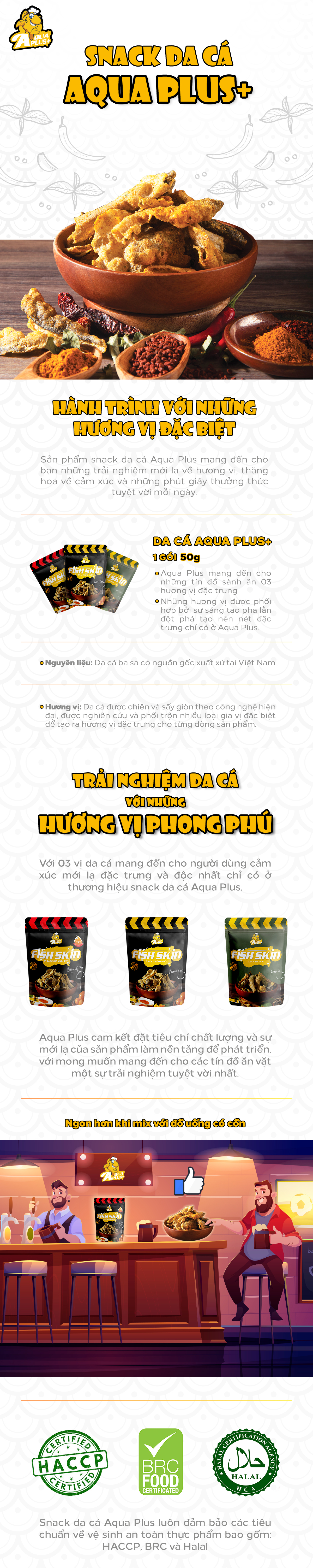 SNACK DA CÁ BASA LẮC TRỨNG MUÔI CAY AQUA PLUS