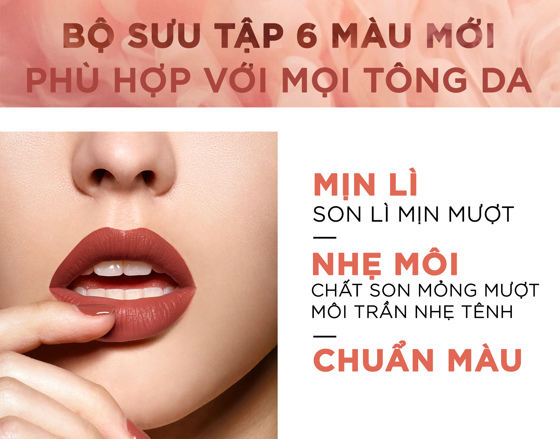 ● Chất son lì, nhẹ môi, môi trần nhẹ tênh