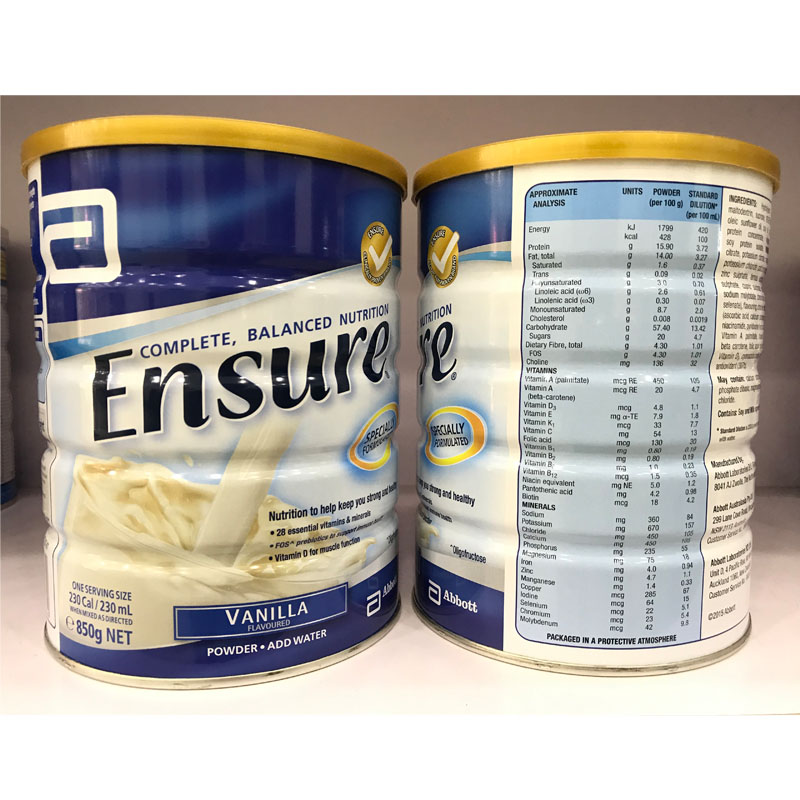 Sữa ENSURE Úc, 850G vị vanilla là một trong nhiều loại sữa của Abbott rất được ưa chuộng. Với thành phần và công thức đặc biệt, sữa Ensure cung cấp một chế độ dinh dưỡng hợp lý để duy trì một cơ thể khỏe mạnh.
