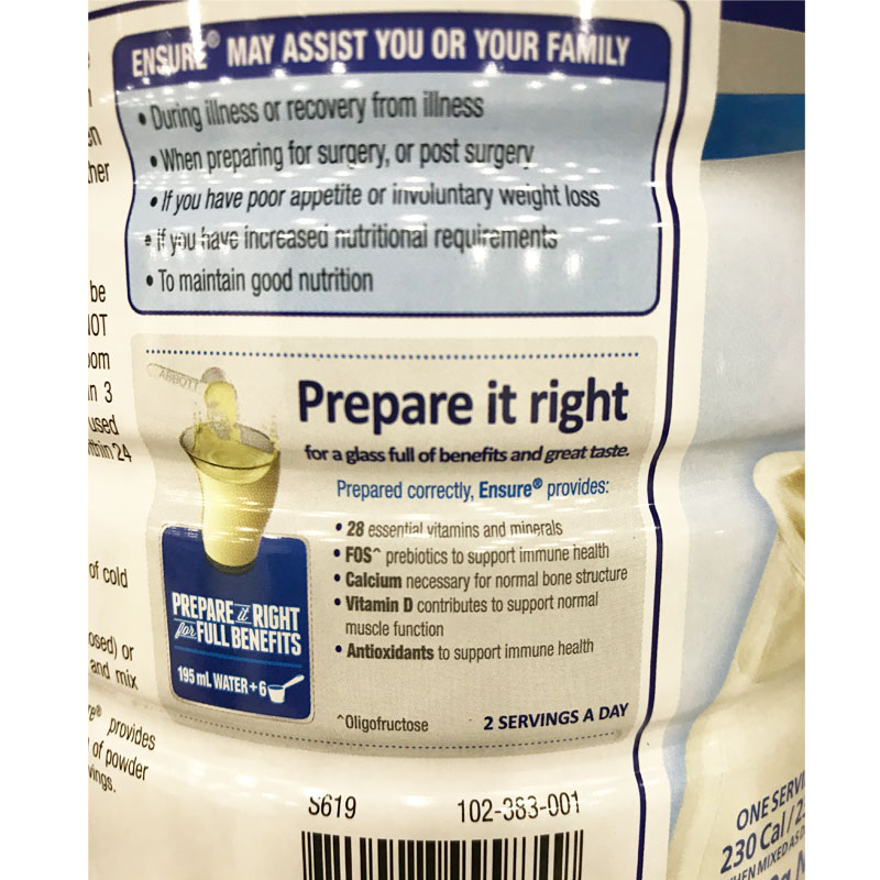 - Hàm lượng FOS có trong Ensure giúp hệ tiêu hóa khỏe mạnh và hoạt động tốt hấp thụ canxi tốt hơn cho cơ thể khỏe mạnh