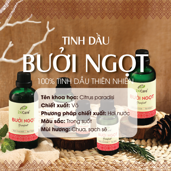 Tinh dầu Bưởi Úc 24Care 100ML - Chiết xuất thiên nhiên, khử mùi, thơm phòng, thư giãn tinh thần.