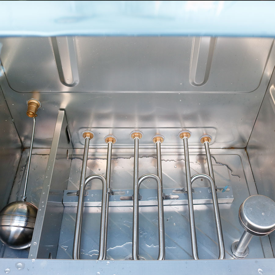 Tủ hấp giò chả hấp chín thực phẩm nhờ lượng hơi nước bốc lên nhờ bộ phận thanh nhiệt công suất lớn, an toàn, phao tự động cấp nước thông minh.