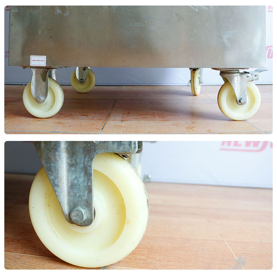 Chân tủ hấp được thiết kế các bánh xe chắc chắn, tiện lợi cho quá trình di chuyển.