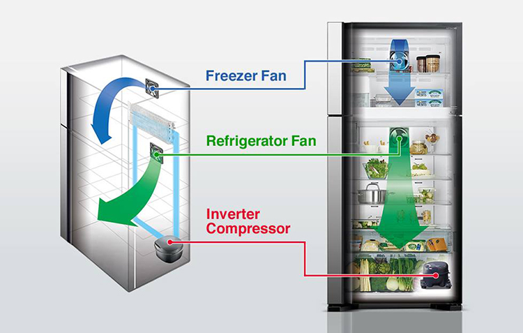 Tủ lạnh Hitachi nổi bật với công nghệ máy nén inverter, làm lạnh siêu nhanh và siêu tiết kiệm điện. Kết hợp với hệ thống quạt kép Dual Fan giúp làm lạnh nhanh chóng và hiệu quả tiết kiệm vượt trội.