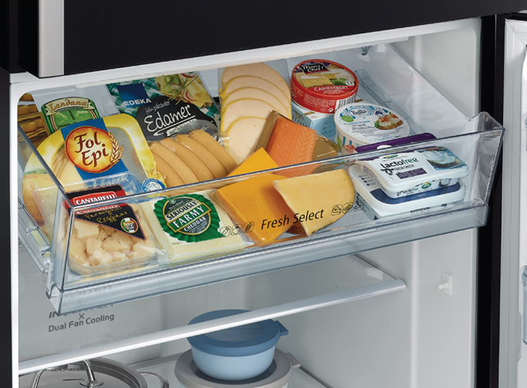 Ngoài ra, tủ được trang bị ngăn chứa rau quả rộng rãi, hơi lạnh không thổi trực tiếp vào bên trong giúp duy trì độ ẩm tối ưu. Các loại rau, trái cây được dự trữ tươi và lâu dài hơn.