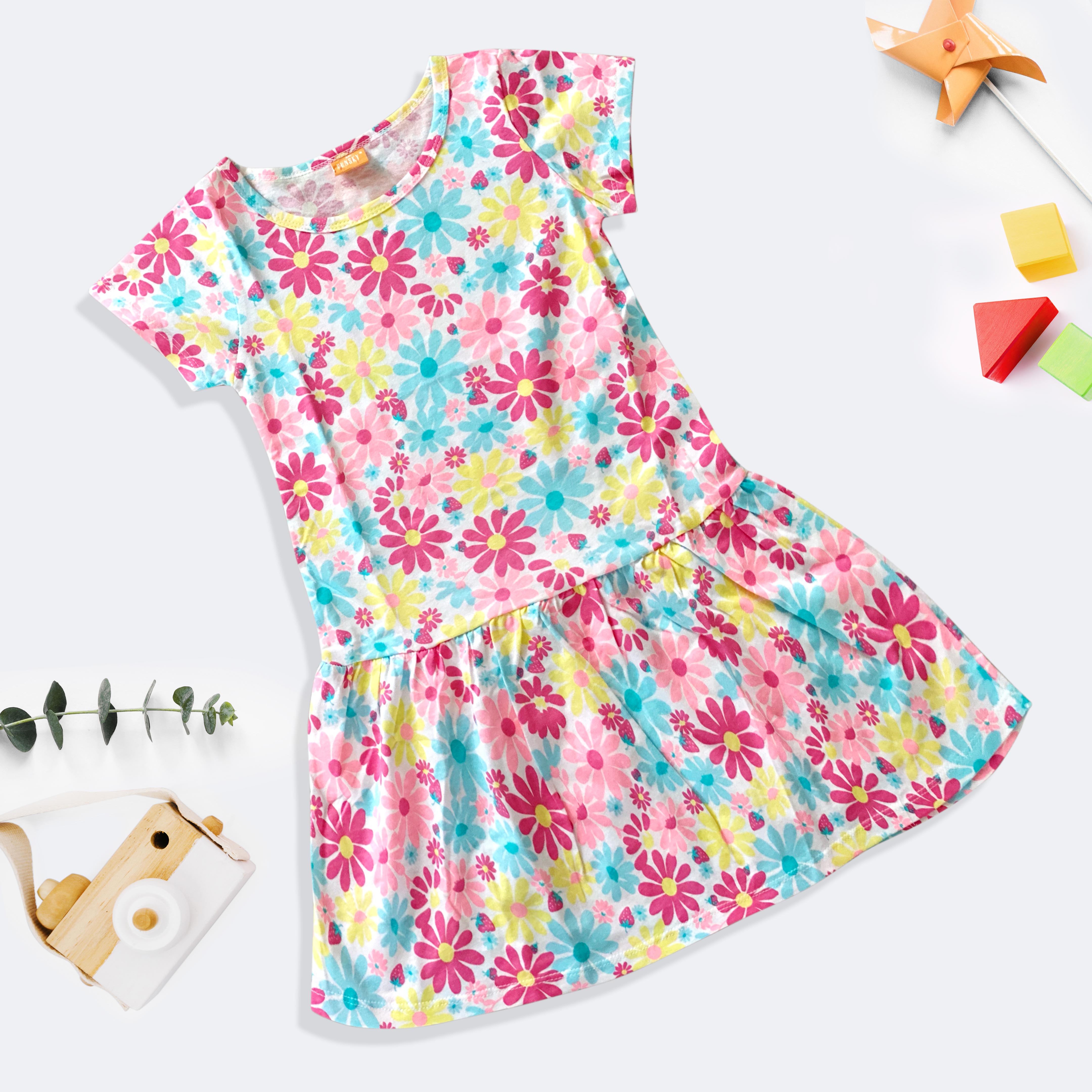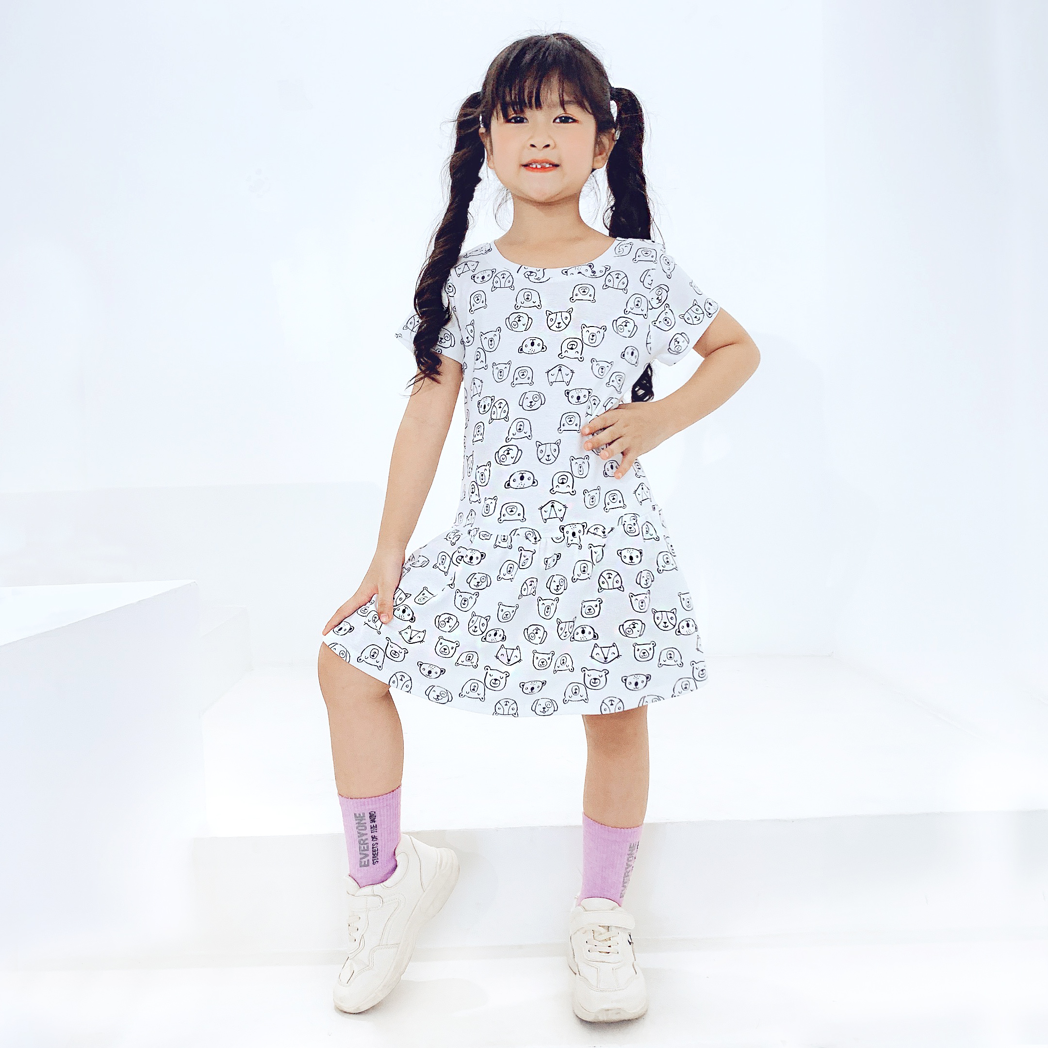 Đầm Thun Hoa Bé Gái Ngắn Tay