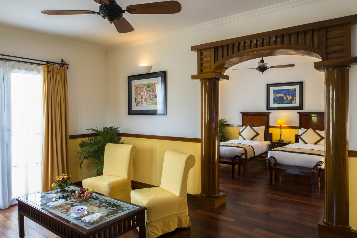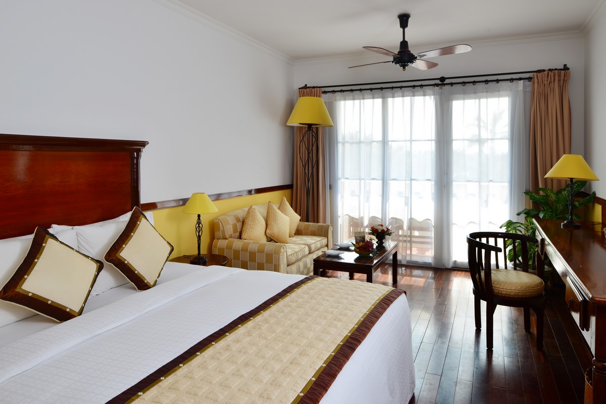Resort bao gồm 28 phòng Superior, 56 phòng Deluxe và 08 phòng Suite. Thiết kế mỗi phòng là sự tổng hòa giữa nét tinh tế của nghệ thuật thủ công truyền thống Việt Nam cùng nét duyên dáng của kiến trúc Pháp cổ. Tại đây, toàn bộ hệ thống phòng ốc đều được bài trí gọn gàng, ngăn nắp, trang bị cơ sở vật chất hiện đại, tiện nghi, tạo cảm giác thoải mái như đang ở chính không gian nhà mình.