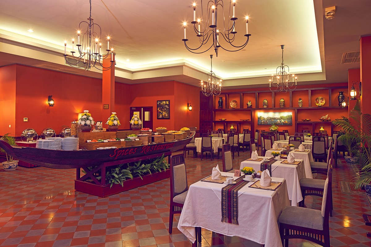 Nhà hàng Spices trong Victoria Cần Thơ Resort 4* có chỗ ngồi ở trong nhà và ngoài trời đều hướng ra vườn hoa xinh đẹp hoặc dòng sông Hậu thơ mộng giúp du khách có được một không gian nghỉ dưỡng tuyệt vời. Bạn có thể thưởng thức những món ăn châu Âu hoặc những món đồ ăn Việt khi đến nơi đây. Nhà hàng thiết kế theo phong cách trang nhã, thượng lưu kiểu Pháp cổ nên nơi đây phù hợp cho những bữa tiệc ấm cùng và mang vẻ cổ điển.