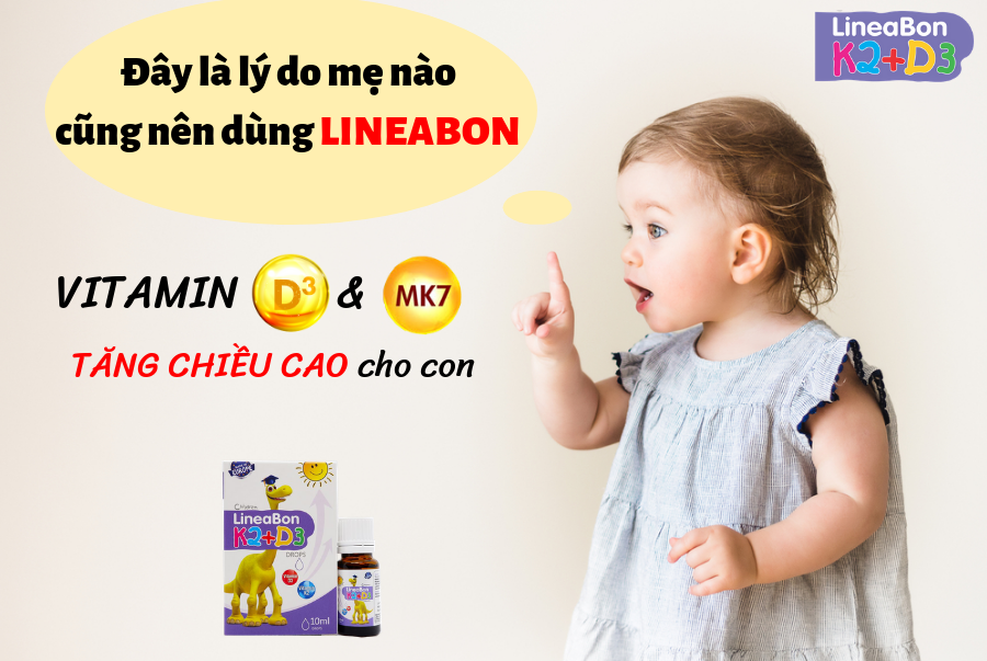 * Hỗ trợ tăng chiều cao tối đa: Nhờ bộ đôi vitamin D3 và MK7 trong Lineabon, canxi sẽ được tăng hấp thu tối đa, đưa canxi đến đúng đích là xương, giúp xương của trẻ phát triển chắc khỏe và cải thiện chiều cao, chống còi xương cho trẻ, thích hợp sử dụng cho cả những trẻ có cơ địa khó hấp thu canxi.