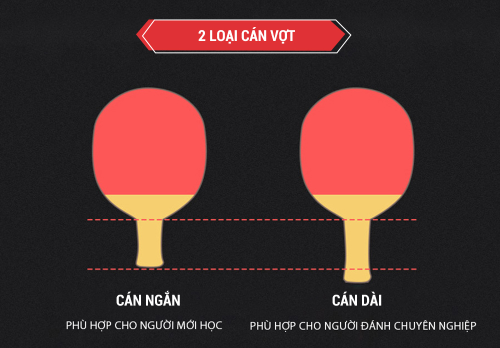 Có 2 loại: cán ngắn cho người mới, cán dài cho người chơi chuyên nghiệp