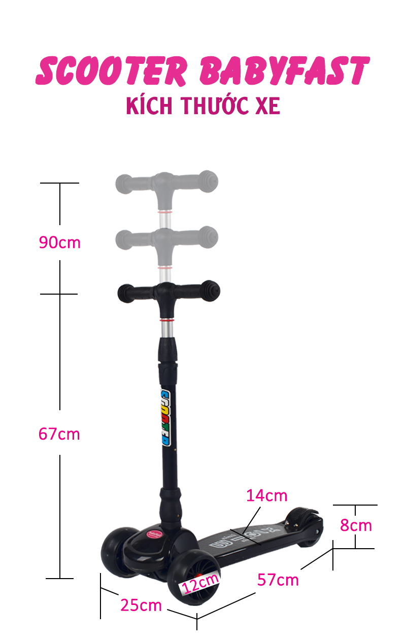 Thiết kế độc đáo về kiểu dáng, màu sắc khá đa dạng, xe trượt Scooter phù hợp với sở thích của trẻ nhỏ. Xe được gấp gọn bởi một khóa cố định phía bánh trước, khóa này giúp cần lái có thể gập song song với thân xe khi không sử dụng hoặc dựng đứng một góc 90 độ khi sử dụng #babyfast #babyhop #scooter